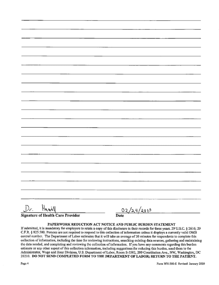 My father fell 30 feet from his roof. He suffered multiple traumatic injuries. He has been dorsum and forth between the hospital and rehab for the past 2 months. He tentatively volition be discharged dwelling house in a few weeks. He volition need nigh total intendance at home. He lives 10 hours away and his wife needs aid with caring for him. I applied for fmla. None of his doctors will fill out the fmla form so I can help with his care. Yet they did ship his history and physical for my family unit doctor to review in society to complete the paperwork. My doctor had no problem completing the fmla form. Withal, my employer is denying me fmla considering none of the treating physicians completed the form. What do I practice now?